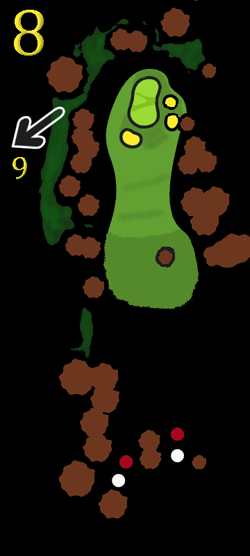 It plays much the easiest with a back-right flag, as the far bank will throw the ball back for you. For a front flag, the safe shot may be to drop on the ramp and putt up the slope, and with the flag on the left-hand mezzanine you just have to be stupidly accurate with your range to have any chance. Missing short and right is always bad news here, and can leave you facing 5 or worse with a front flag.
