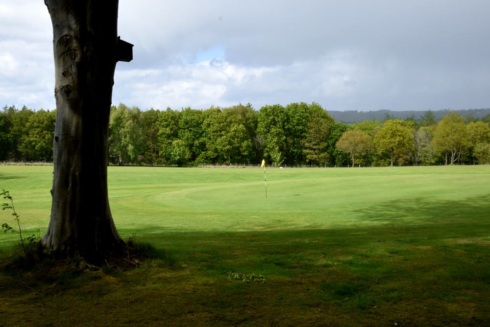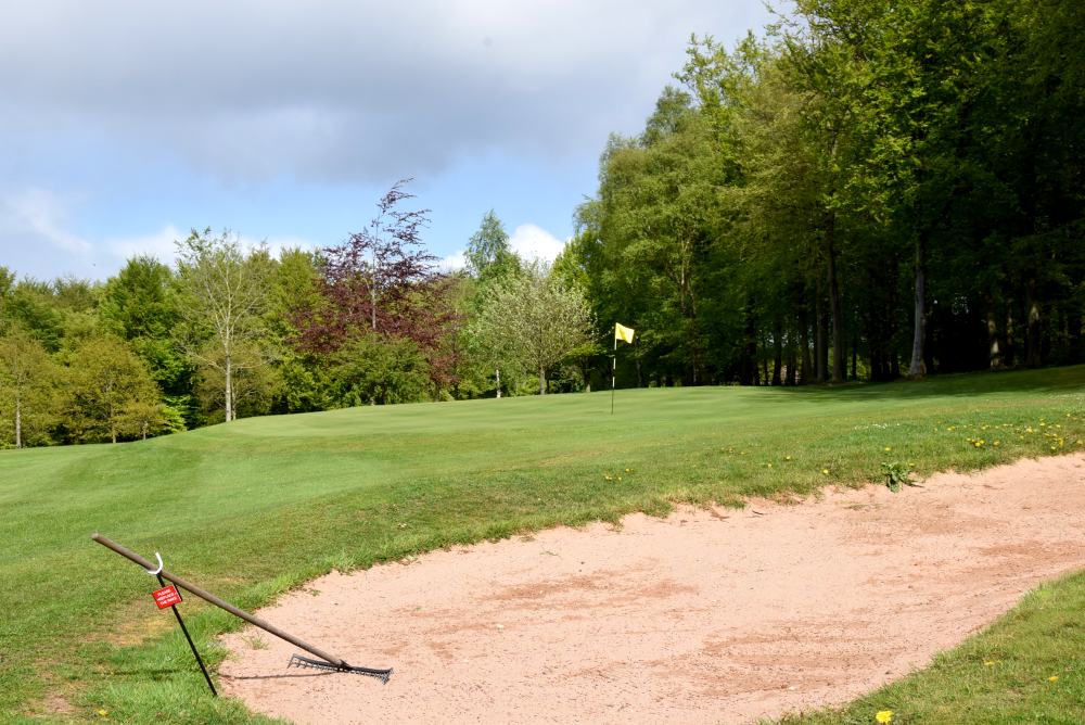 This is the ideal line to the green, but in summer you may have to run it in to have any chance of holding the ball on the green. If you have the wind behind, then dropping it just past the right bunker may be the only hope!