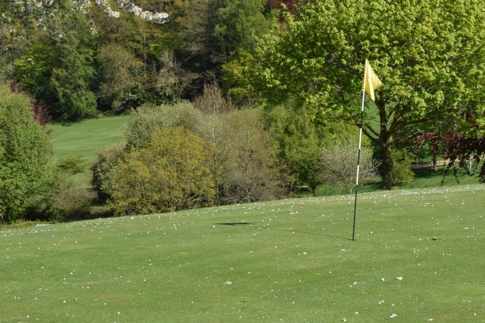 You can pitch this on (with care) or run it round the slope and use the contours of the green.