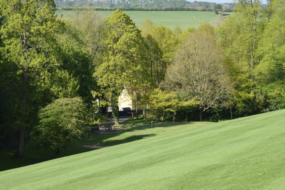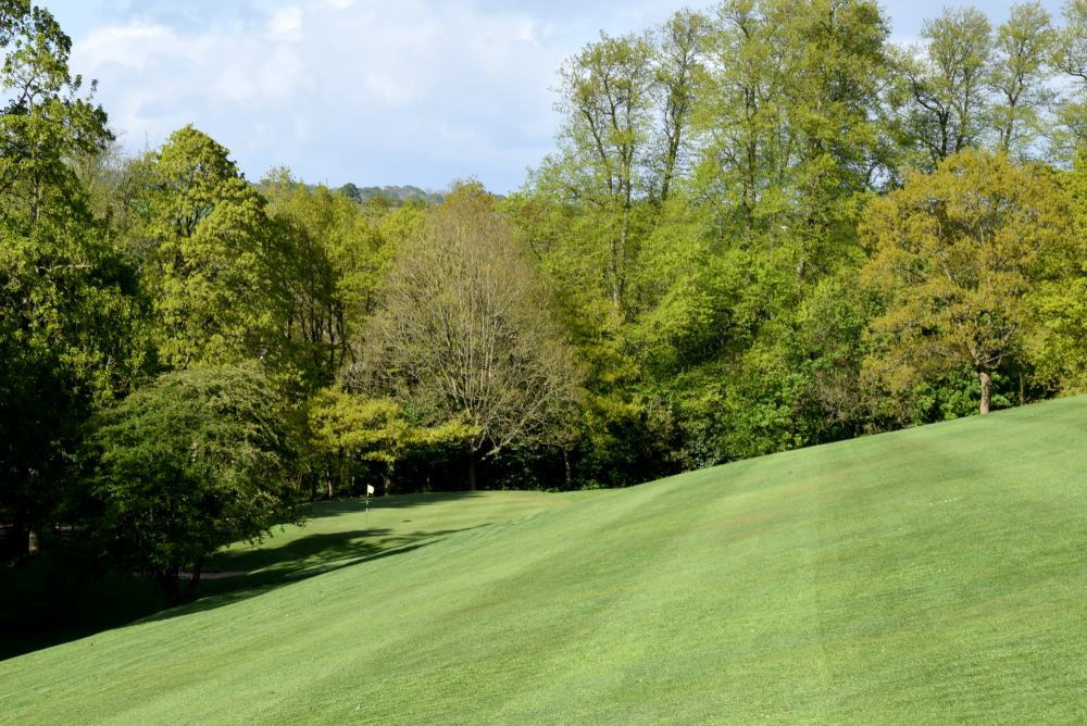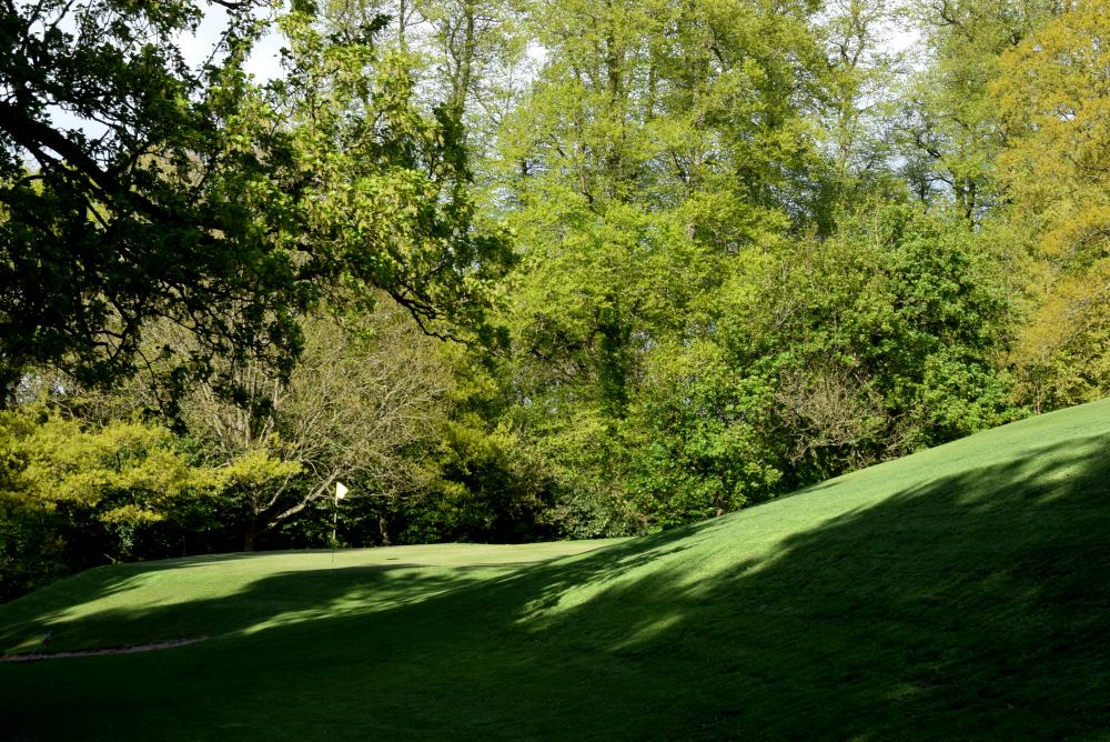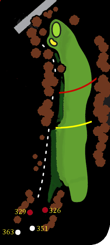 The faster this is running, the further right you need to aim to keep the ball on the fairway. Or you could just play for the valley anyway. The one place not to finish is halfway down the bank on the left!