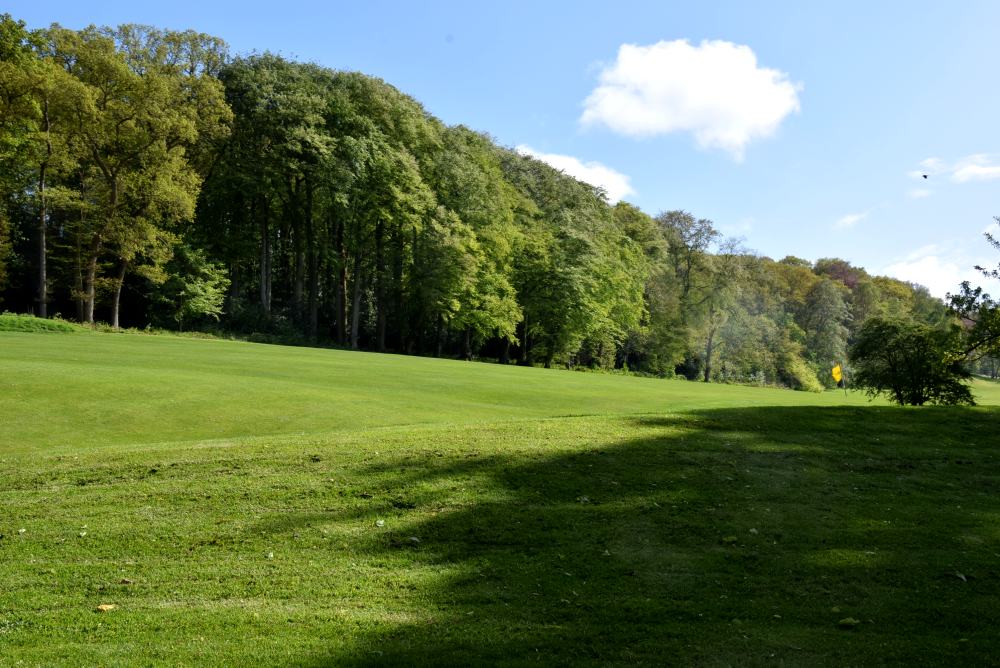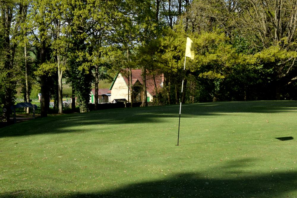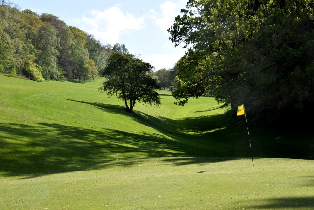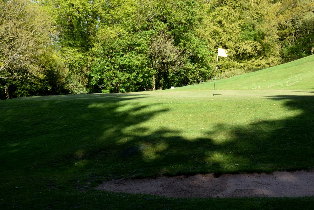 This shot gets a lot harder in summer, when a wedge to the green gets one bounce and off towards the road. The bump and run needs to start about half-way to the line of the 10th tee.